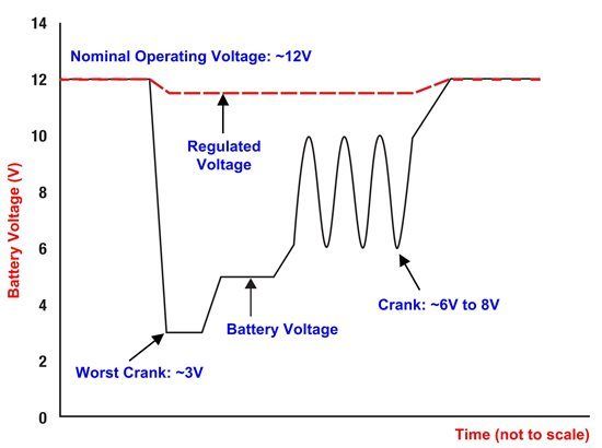 面對各種電源電壓變量,如何在降低寬泛輸入 DC/DC 解決方案成本與復(fù)雜性的同時(shí),最大限度提高其性能與可靠性?例如,新增啟停技術(shù)的汽車動力系統(tǒng)會涉及多變的電壓分布(如圖 1 所示),需要采用前置升壓或降升壓功率級,該功率級必須滿足 40V 甚至更高電池負(fù)載突降過壓瞬態(tài)的要求。