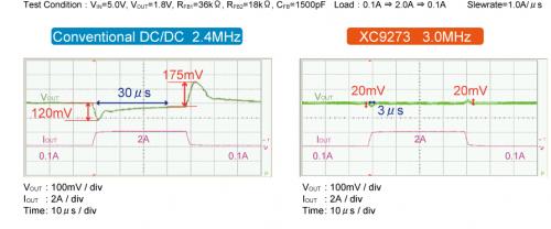 ▲図1 與過去的產品的高速瞬態響應比較