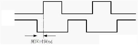 對于半橋、全橋和LLC諧振等一些H橋或半H橋的拓撲電源,PWM的死區時間設定對電源可靠性至關重要。實際上設定死區時間實則為了避免上、下管直通從而導致電源炸機,也就是說設定一段上、下管同時關斷的時間,在上管關斷后延遲一段時間再導通下管或在下管關斷后延遲一段時間再導通上管,如圖 2所示td即為死區時間。