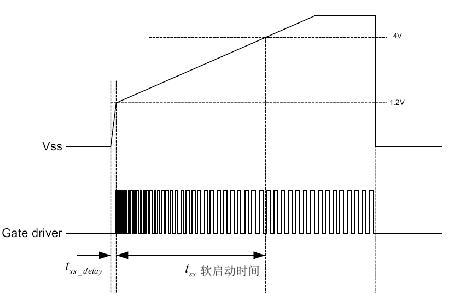 電源的軟啟動對降低場效應管和輸出二極管的尖峰電壓和尖峰電流有很大幫助,從而降低了其電壓應力和電流應力。但是對于LLC諧振電源來說,軟啟動對電源起機的可靠性非常關鍵;因為LLC電源的IC是通過高頻掃描的方式啟動的。如圖 3所示在IC啟動時驅動PWM頻率會從設定的最高頻率開始慢慢恢復正常頻率,恢復時間也就是軟啟動時間。在此期間電源工作在不穩定狀態,軟啟動時間越長,啟動越安全;但軟啟動時間過長也會對電源帶容性負載能力和起機時間造成影響。