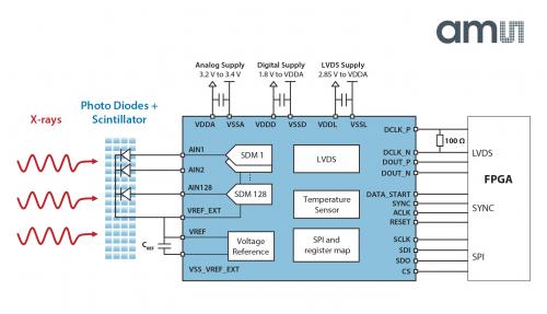 用于CT X射線掃描儀的AS5900探測器接口芯片為該設備的關鍵參數設立新的標準: