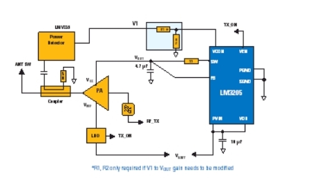 實例:在VIN=4.2V、V o=3.4V、Io =400mA(高射頻功率)時,LM3205的效率達到96%,在VIN=3.9V、V o=1.5V、I o=100mA(低射頻功率)時,效率為87%。