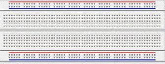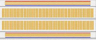 電阻器和電容器等元件的引線插入孔中。每組五個(gè)孔通過下面的金屬條連接形成一個(gè)節(jié)點(diǎn)。節(jié)點(diǎn)是電路中兩個(gè)或多個(gè)元件連接的點(diǎn)。可通過將元件引線插入共同節(jié)點(diǎn)來實(shí)現(xiàn)元件之間的連接。試驗(yàn)板頂部和底部用紅色和藍(lán)色條紋表示的一長排孔用于電源連接。插入元件并用跳線連接在一起便可構(gòu)建電路的其余部分。此類試驗(yàn)板最好搭配使用實(shí)芯線而不是多股絞合線。為方便起見,還提供配有插入式引腳的跳線。